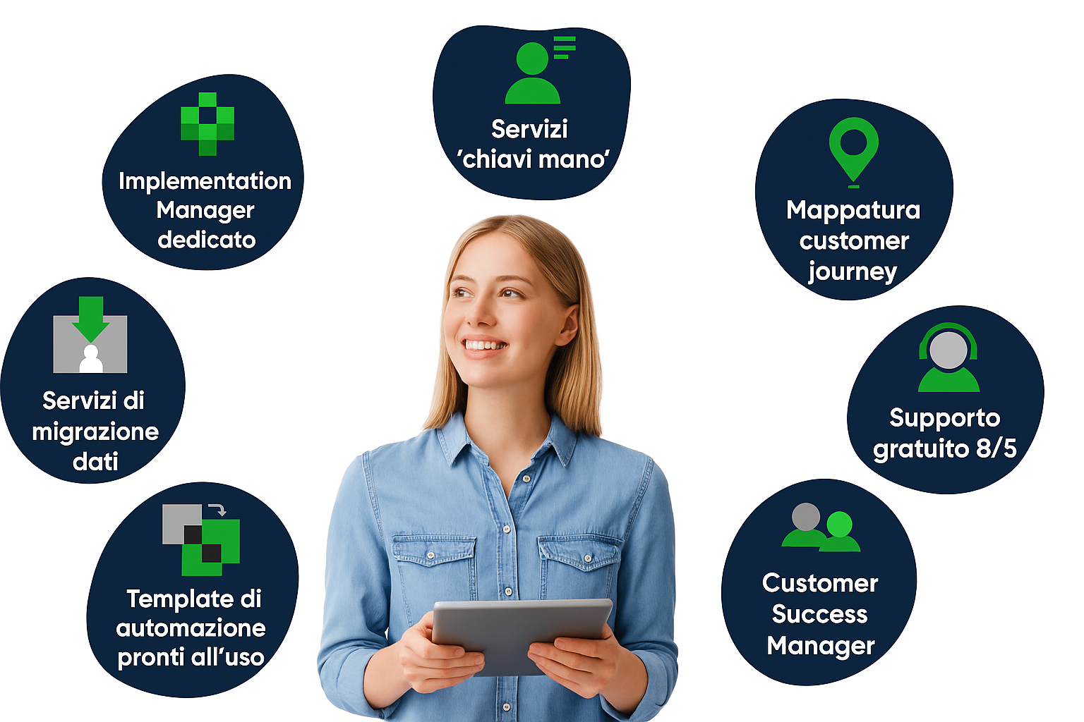 Fai lavorare il software al posto tuo: automatizza marketing, vendite e assistenza, senza perdere opportunità.