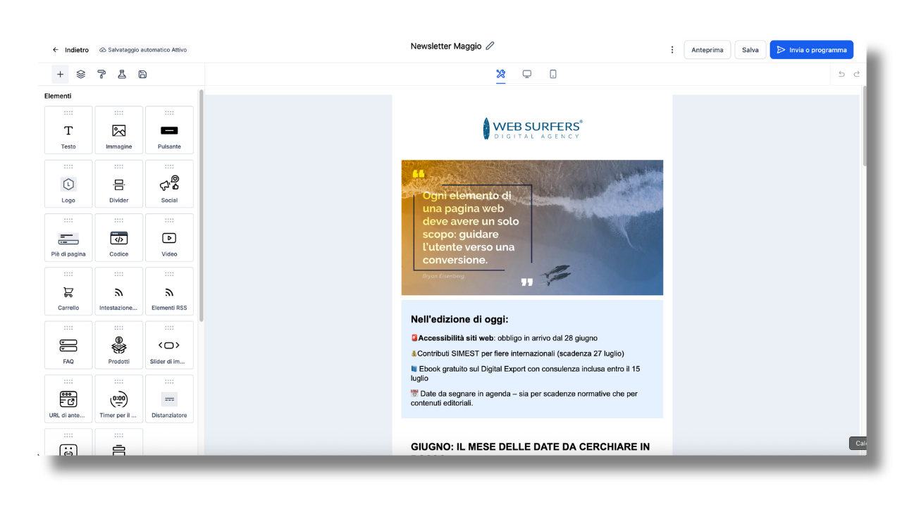 Personalizza messaggi per segmenti specifici, crea template riutilizzabili, programma invii o includili in automazioni di nurture e flussi di vendita.