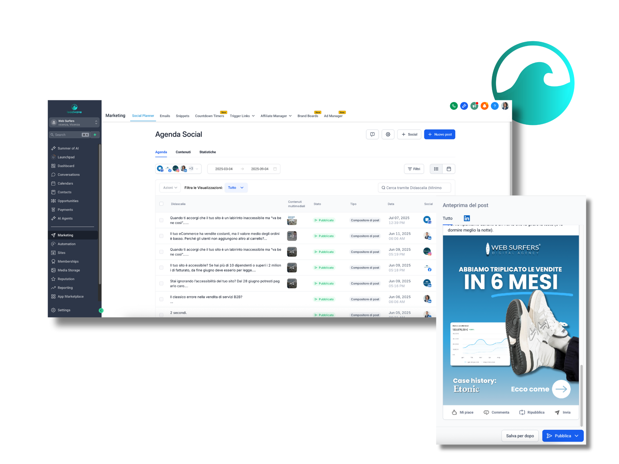 Dimentica l’adrenalina dell’ultima ora: con Leadwave, la tua presenza social è fluida, coerente e sempre al ritmo giusto.